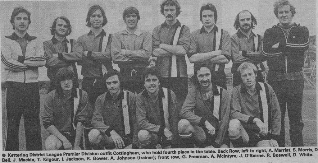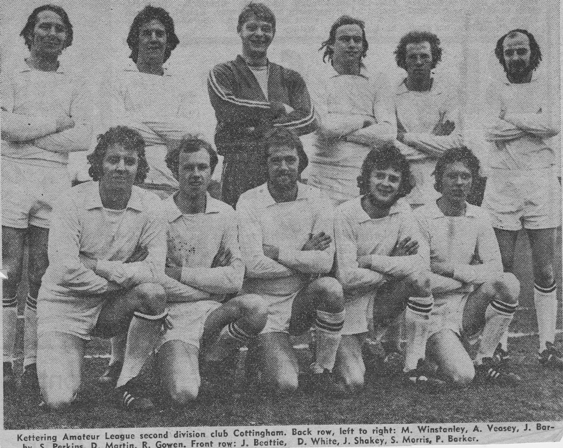 Mike Beadsworth (who is pictured front row third right on the 1953 photo above), says that this picture was most likely taken at the end of the 1952/53 season, while Cottingham FC was playing in the Market Harborough and District Football League. He says that, several years later, Cottingham FC moved to the Kettering and District Football League before joining the semi-professional United Counties Football League in the 1970s.